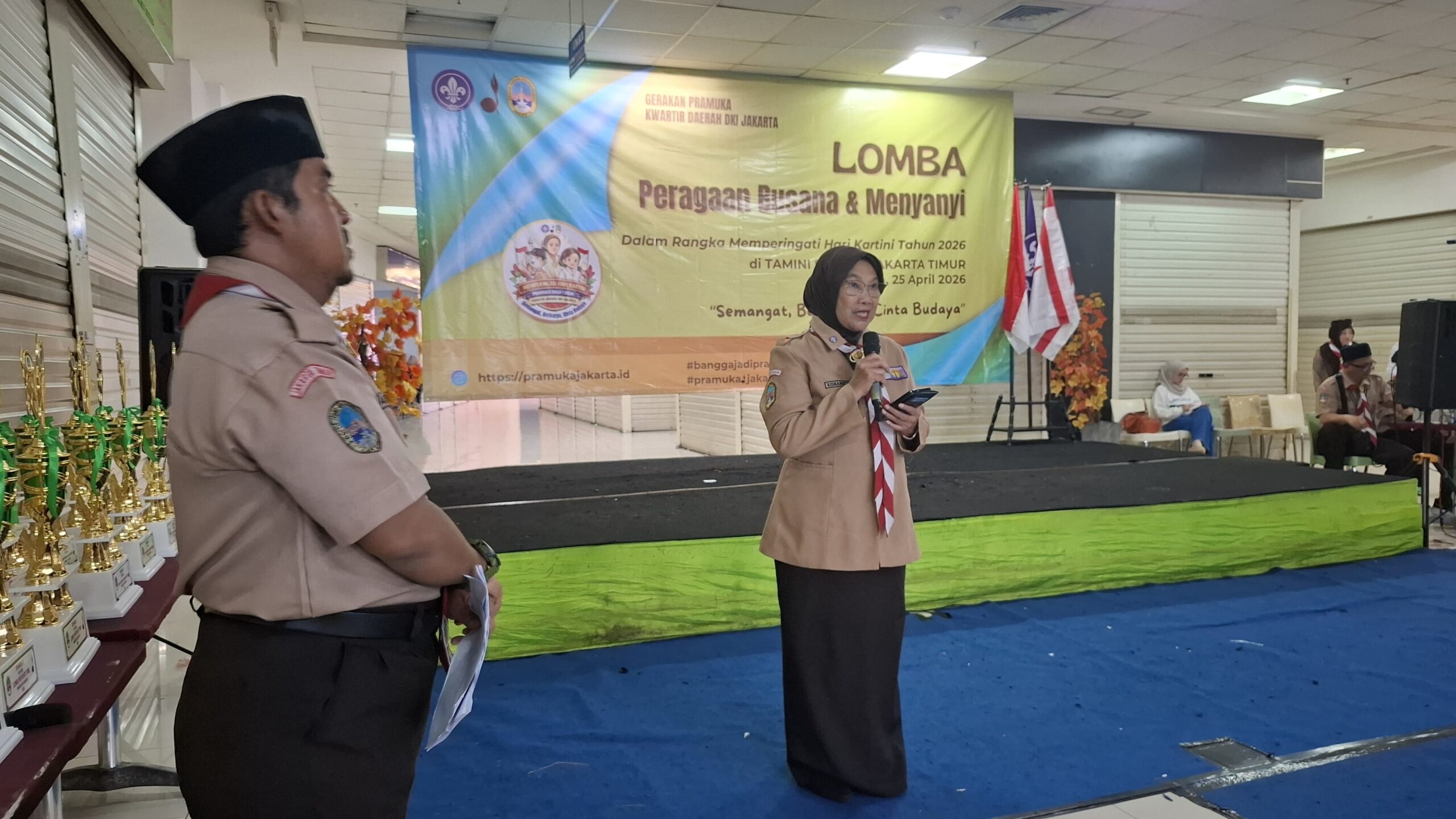 Jakarta Timur — Kwartir Daerah (Kwarda) Gerakan Pramuka DKI Jakarta melalui Bidang Pembinaan Anggota Muda menyelenggarakan lomba peragaan busana dan menyanyi dalam rangka memperingati Hari Kartini, Sabtu (25/4) di Tamini Square, Jakarta Timur.