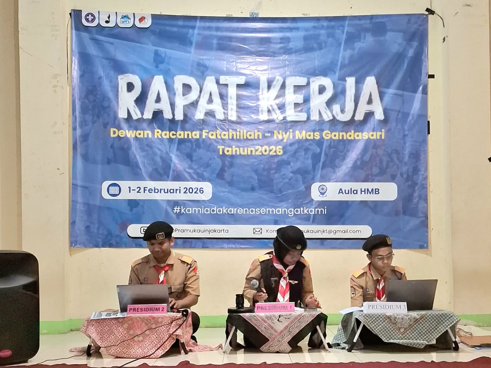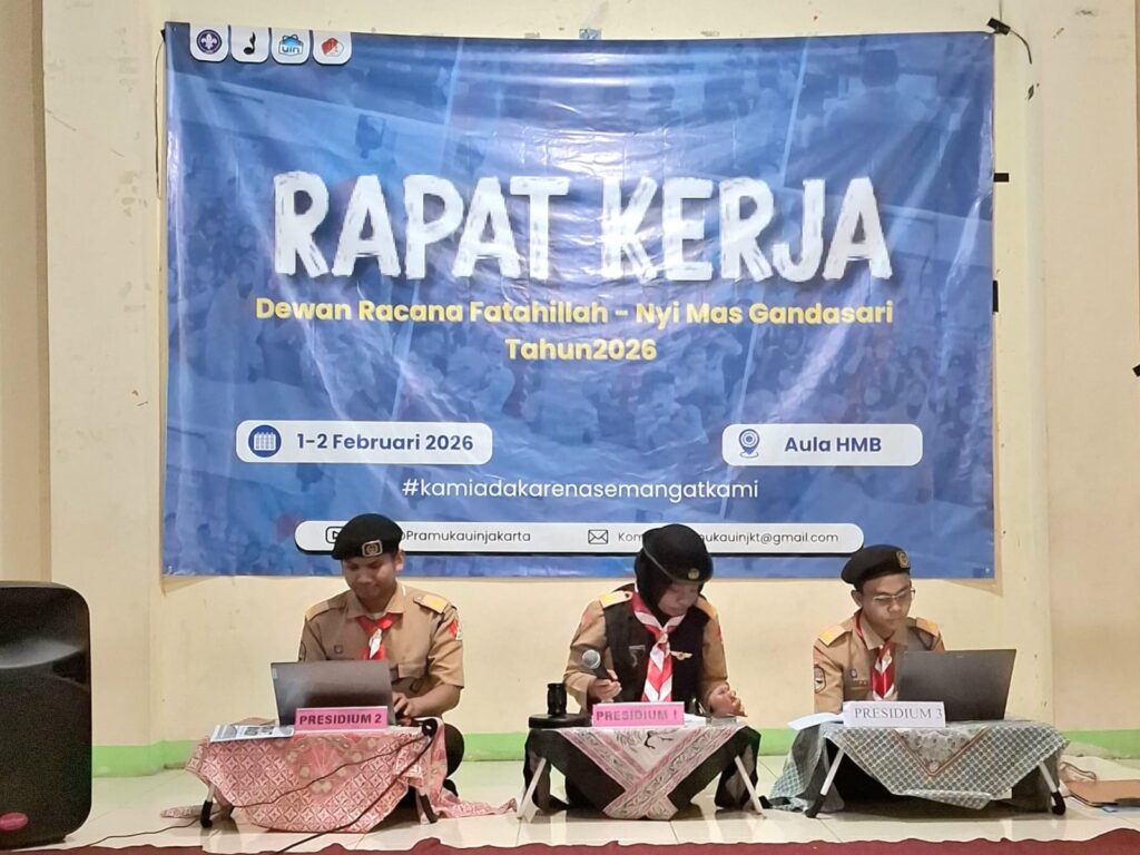Jakarta Selatan — Dewan Racana Fatahillah–Nyi Mas Gandasari Gerakan Pramuka UIN Syarif Hidayatullah Jakarta menyelenggarakan Rapat Kerja Dewan Racana (Raker DR) Tahun 2026 pada 1–2 Februari 2026. Kegiatan yang berlangsung di Aula HMB Jakarta tersebut diikuti oleh 35 peserta yang terdiri atas warga Racana dan pengurus Dewan Racana masa bakti 2026.