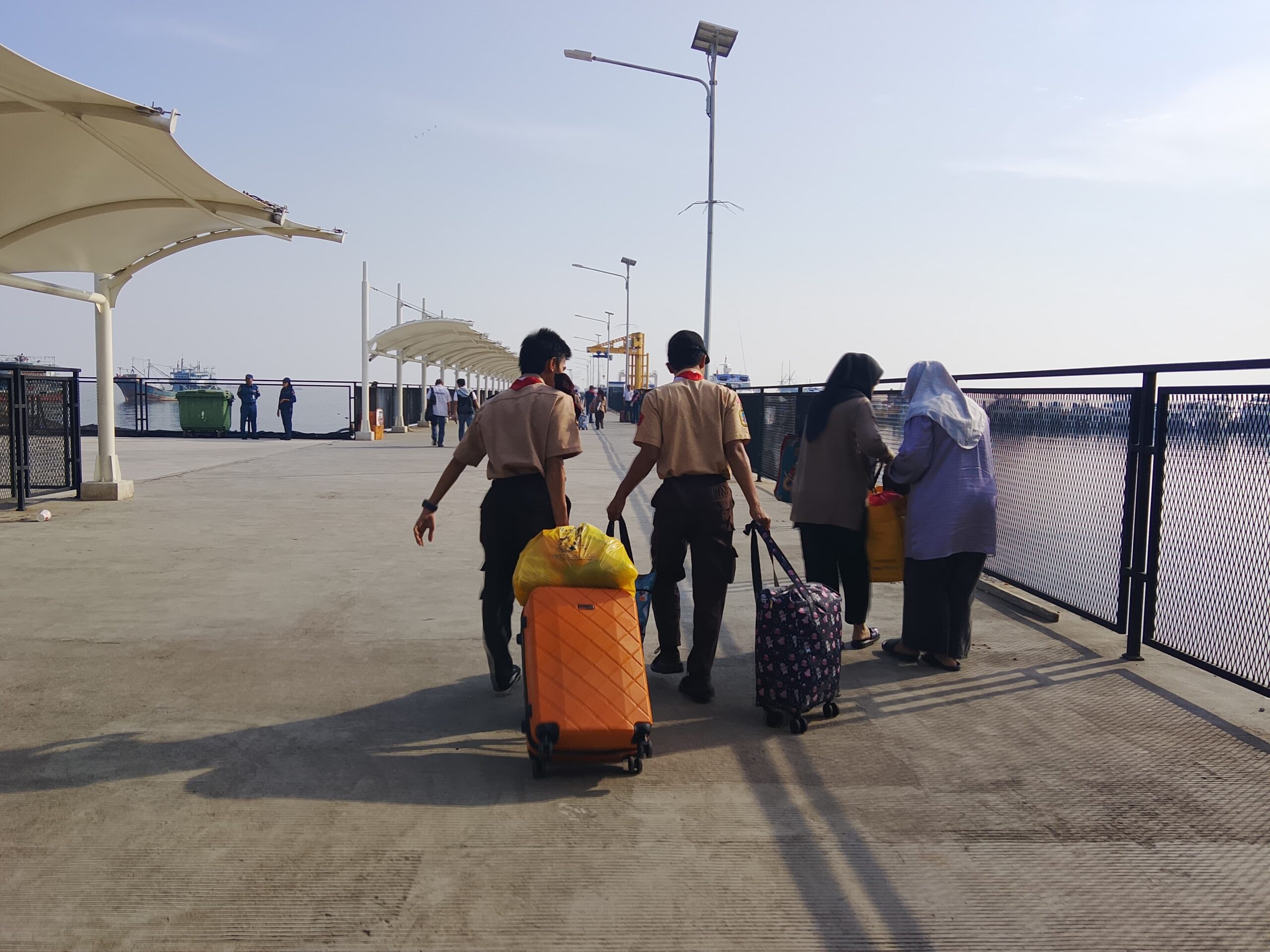 Selama kegiatan berlangsung, anggota Pramuka telah aktif membantu para pemudik sejak pagi hari. Mereka membantu membawa barang bawaan penumpang, memberikan informasi, serta mengarahkan jalur keberangkatan kapal sesuai tujuan masing-masing, sehingga proses keberangkatan berjalan tertib dan lancar.