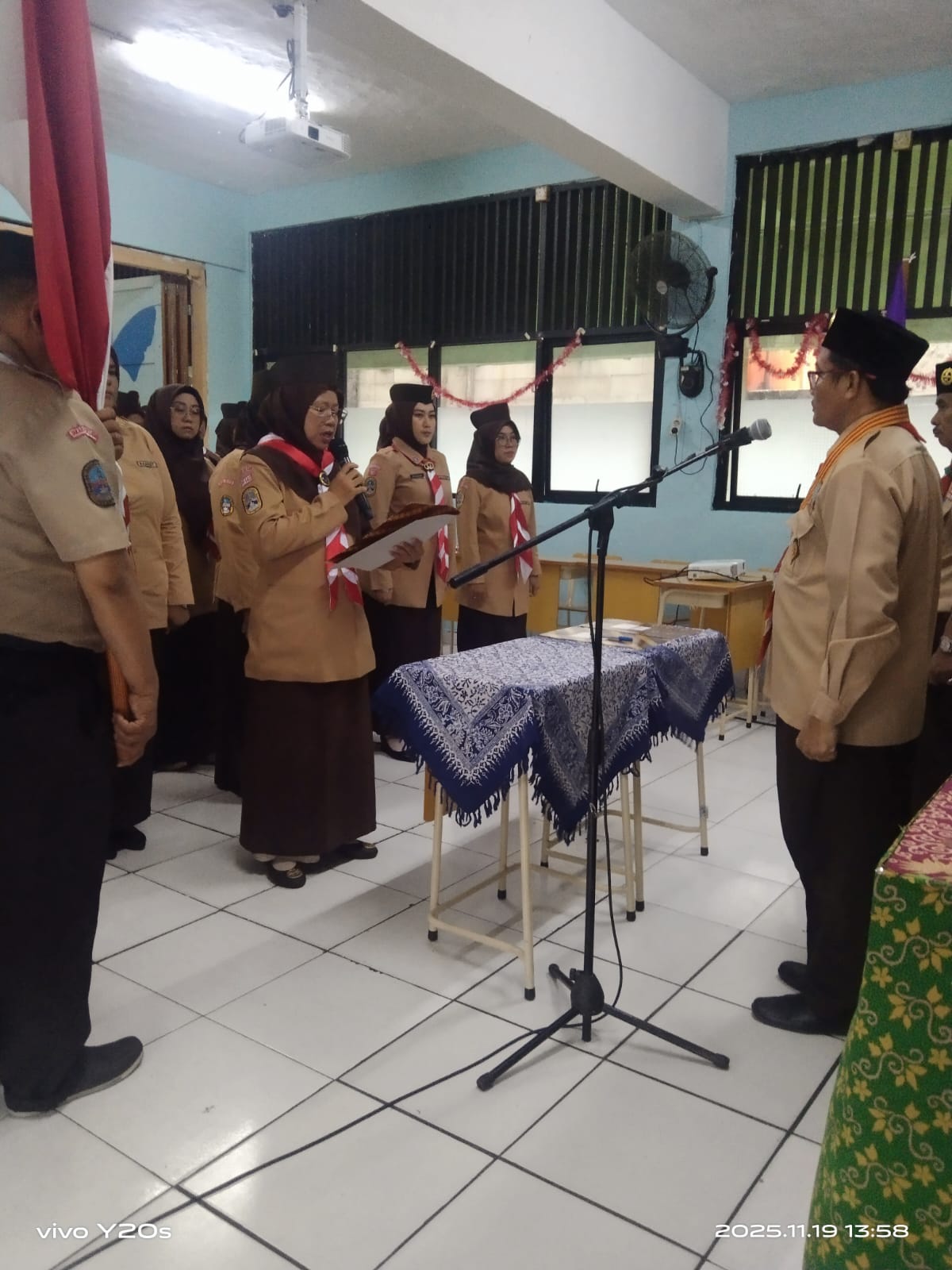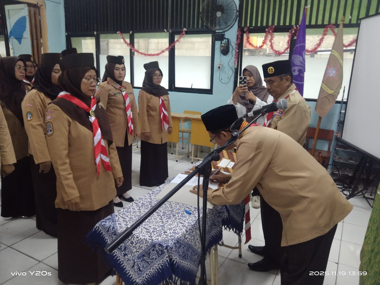 Jakarta Selatan — Pelantikan dan pengukuhan Majelis Pembimbing Gugusdepan (Mabigus) serta Pengurus Gugusdepan (Gudep) 06-139/06-140 Majapahit Pangkalan SDN Pondok Labu 03 berlangsung khidmat pada Selasa, 19 November 2025. Prosesi sakral ini diwarnai turunnya hujan deras sesaat sebelum dimulai, yang oleh para peserta dimaknai sebagai tanda kesungguhan dan ketulusan dalam memulai amanah baru.