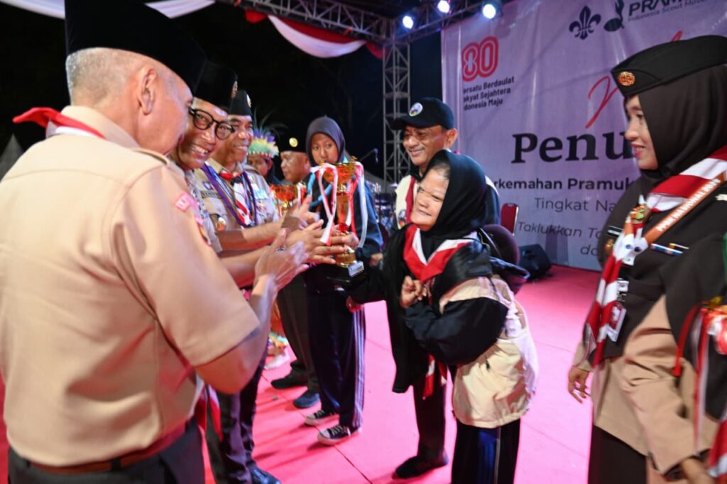 Penghargaan tersebut diserahkan langsung oleh Ketua Kwartir Nasional Gerakan Pramuka, Kak Budi Waseso, kepada para pemenang. Suasana penuh semangat dan kebanggaan tampak mewarnai momen penyerahan piala.