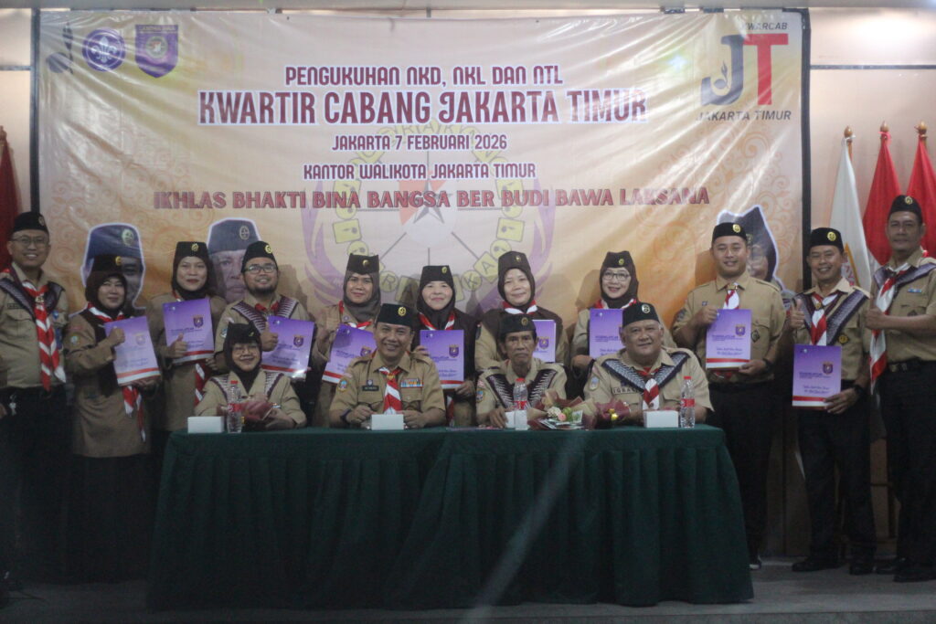Jakarta Timur — Kwartir Cabang (Kwarcab) Gerakan Pramuka Jakarta Timur secara resmi mengukuhkan Pembina Pramuka Mahir Tingkat Dasar, Pembina Pramuka Mahir Tingkat Lanjutan, serta Pelatih Pembina Pramuka Tingkat Lanjutan pada Jumat, 7 Februari 2026. Pengukuhan berlangsung dalam suasana khidmat di Aula Gedung A Kantor Wali Kota Jakarta Timur.