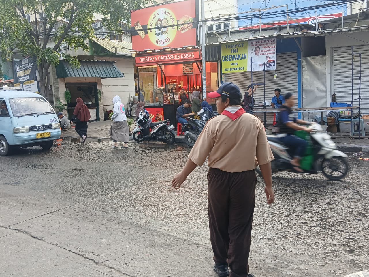 Semangat yyaa! Hebat banget,melakukan patroli keamanan di sekitar Islamic Center yang banyak di lewatin pengendara motor dan Angkutan Umum (Angkot). Membantu pejalan kaki menyebrangi jalan, suatu hal yang mulia banget. Simingit terus,anak-anak pramuka!