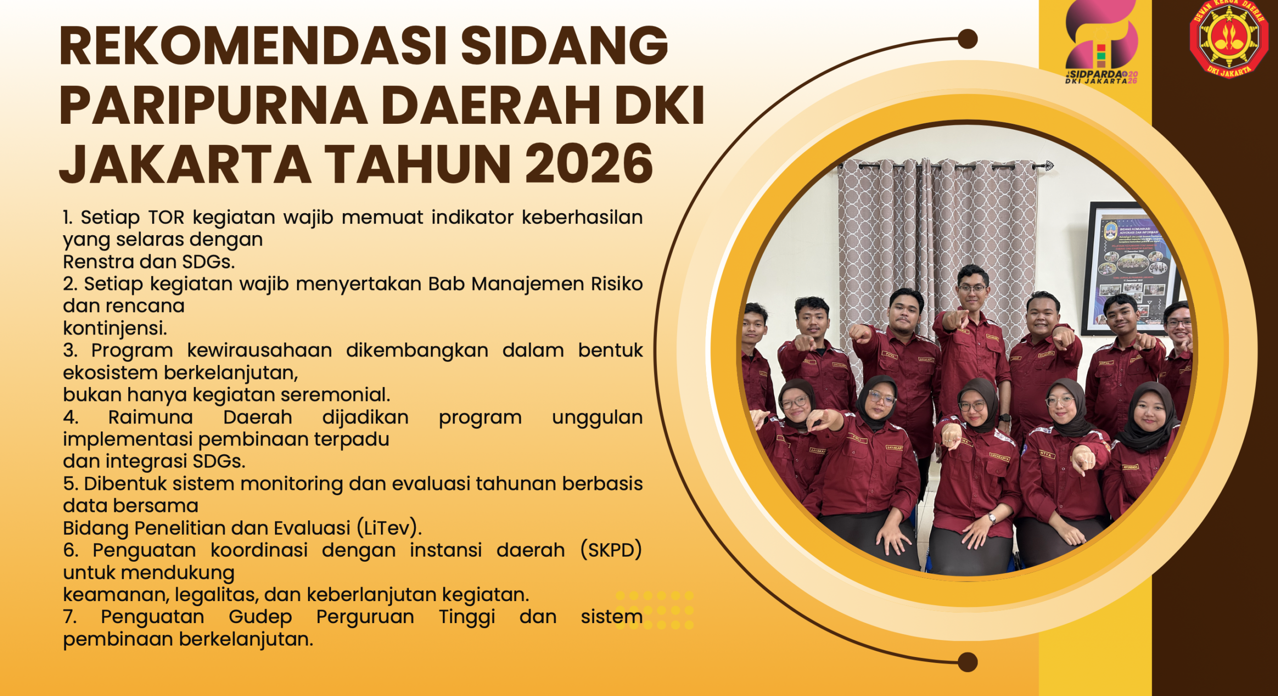 Dalam Sidparda tersebut juga disampaikan sejumlah rekomendasi strategis untuk penguatan tata kelola Dewan Kerja. Di antaranya adalah setiap kegiatan diwajibkan memiliki indikator keberhasilan yang selaras dengan rencana strategis organisasi serta mendukung pencapaian Sustainable Development Goals (SDGs).