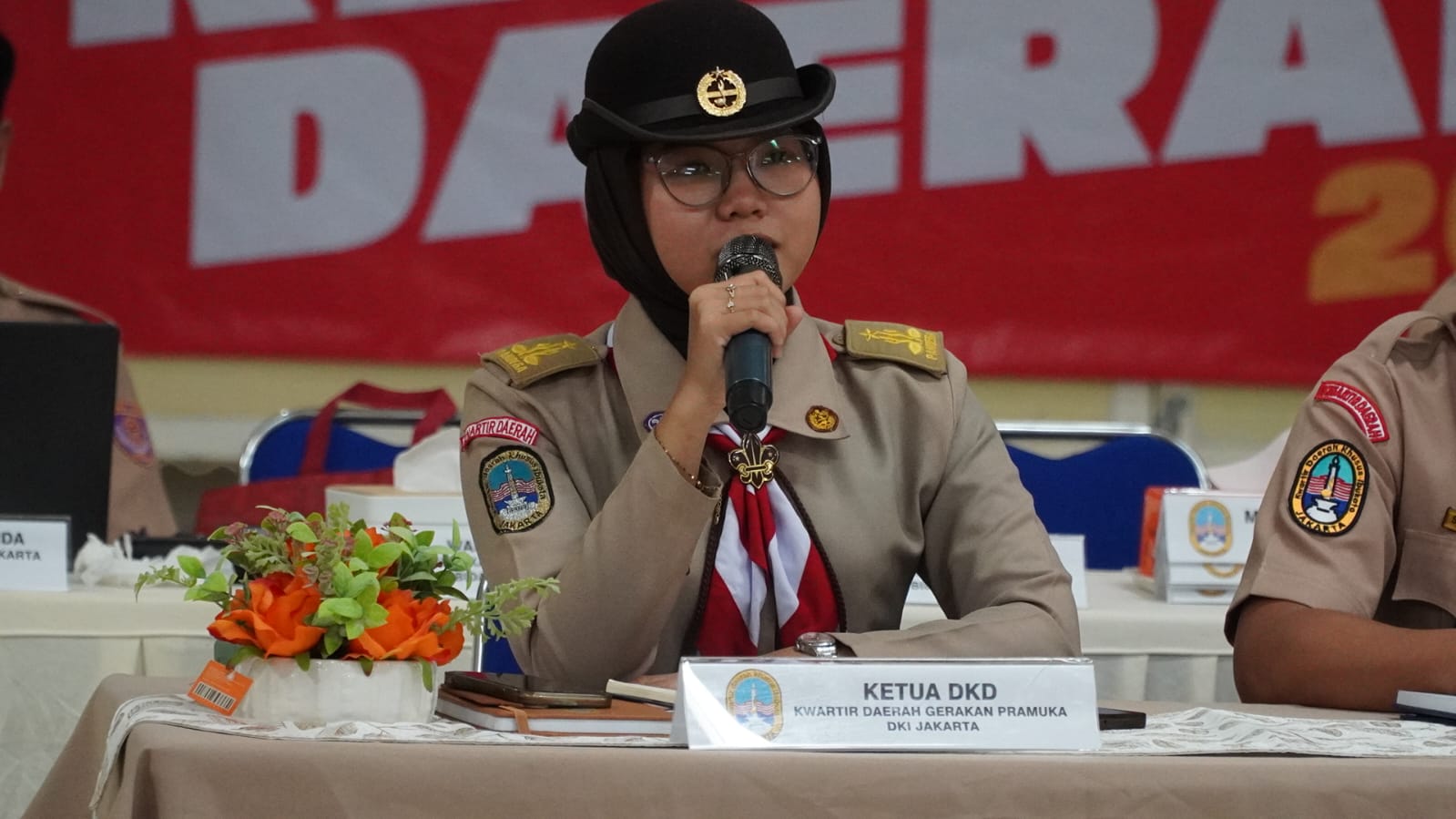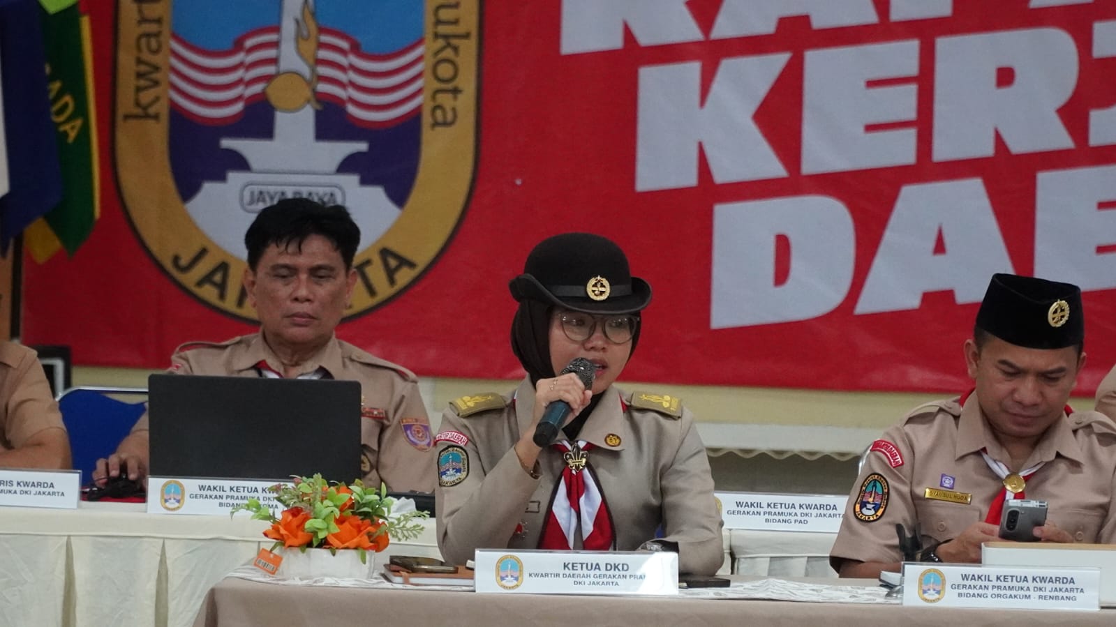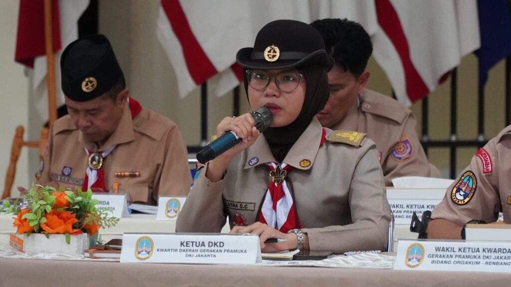 Jakarta — Ketua Dewan Kerja Daerah (DKD) DKI Jakarta Kak Vina Dwi Cahyani memaparkan hasil Sidang Paripurna Daerah (Sidparda) DKI Jakarta Tahun 2026 dalam kegiatan Rapat Kerja Daerah (Rakerda) Kwartir Daerah Gerakan Pramuka DKI Jakarta yang digelar di Gedung Kwarda DKI Jakarta, Sabtu (7/3/2026).