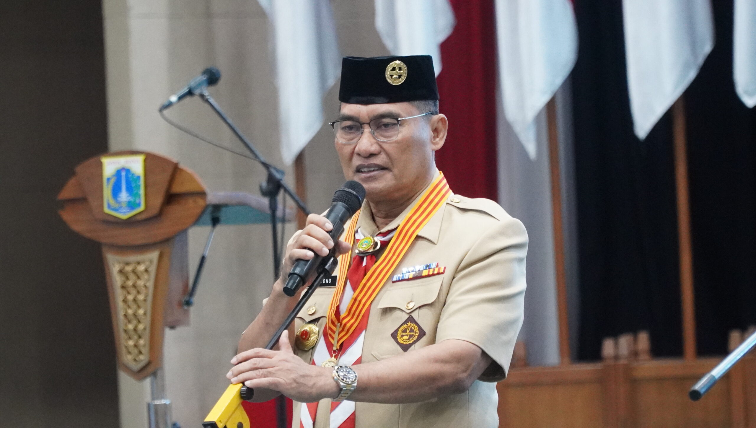 Jakarta – Kwartir Daerah (Kwarda) Gerakan Pramuka DKI Jakarta resmi mengukuhkan Pengurus Majelis Pembimbing dan Pimpinan Satuan Karya (Saka) Widya Budaya Bakti (SWBB) masa bakti 2024–2029. Pengukuhan yang dirangkai dengan kegiatan pelatihan orientasi serta monitoring dan evaluasi ini digelar di Auditorium Ki Hajar Dewantara, Rabu (19/11).