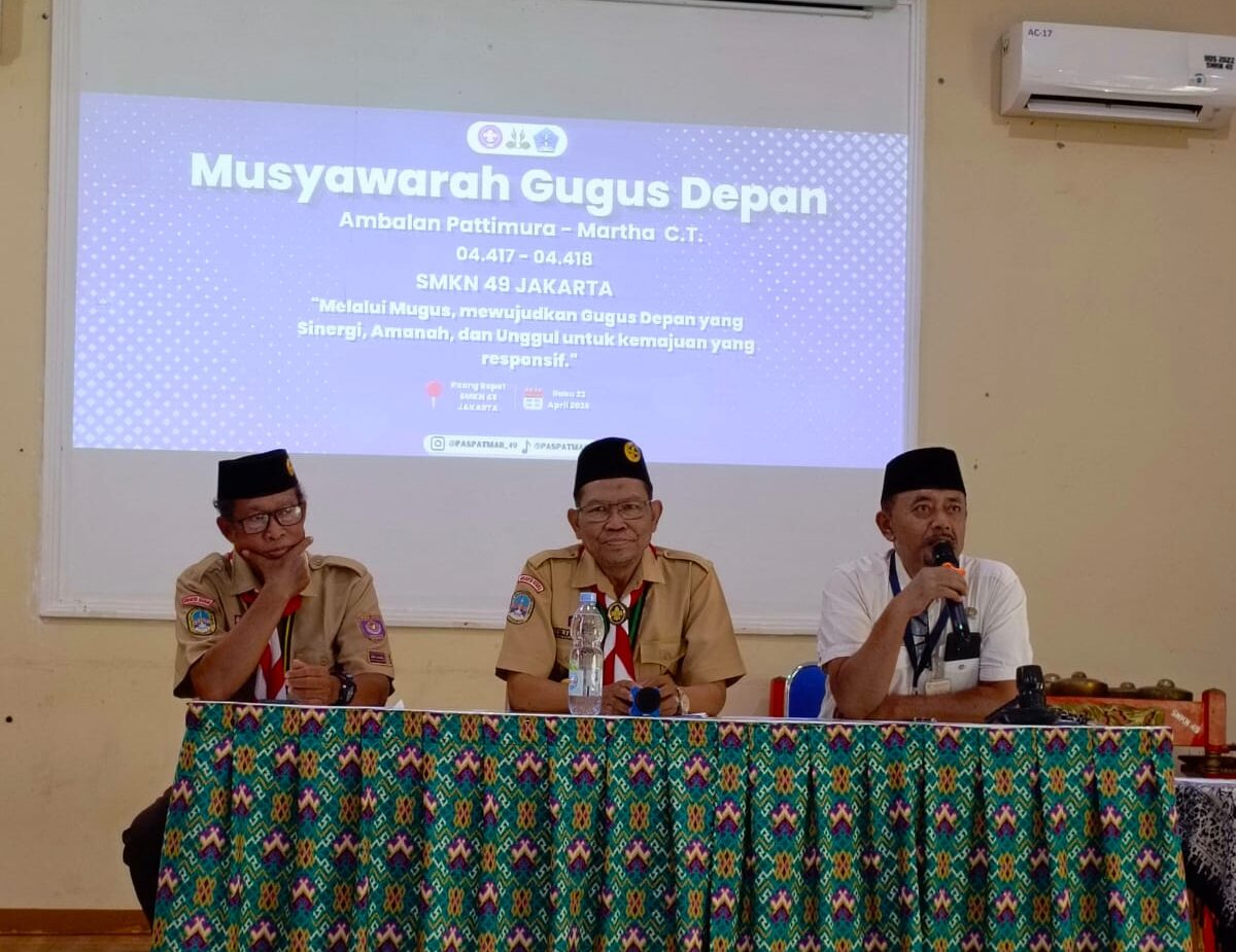 Jakarta Utara — Kwartir Ranting Cilincing menunjukkan komitmennya dalam pembinaan langsung di gugusdepan dengan menghadiri kegiatan Musyawarah Gugusdepan (Mugus) SMKN 49 Jakarta yang digelar pada Rabu (22/4/2026) di lingkungan SMKN 49 Jakarta.