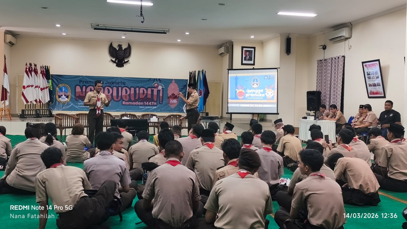 Jakarta — Kwartir Daerah (Kwarda) Gerakan Pramuka DKI Jakarta menggelar kegiatan Ngabuburit Ramadan Kwarda DKI Jakarta 2026 pada Sabtu (14/3/2026) di Aula S. Syamsuri, Kantor Kwarda DKI Jakarta. Kegiatan ini diikuti sekitar 100 peserta yang berasal dari unsur Andalan Bidang Pengabdian Masyarakat dan Dewan Kerja dari berbagai kwartir cabang serta kwartir ranting se-DKI Jakarta.
