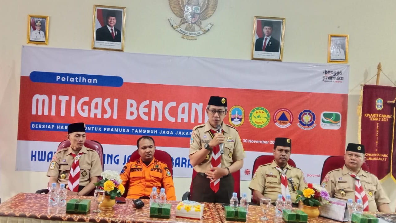 Ketua Harian Kwarcab Jakarta Barat, Kak Prambudi, membuka kegiatan sekaligus menegaskan pentingnya kesiapsiagaan seluruh anggota Pramuka dalam menghadapi ancaman bencana. Ia menyatakan bahwa mitigasi bencana harus menjadi budaya di lingkungan Gerakan Pramuka, bukan sekadar teori di ruang kelas.