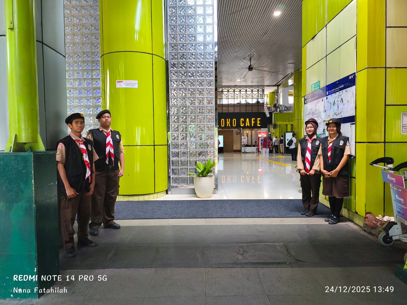 Jakarta — Pimpinan Kwartir Nasional (Kwarnas) Gerakan Pramuka bersama Pimpinan Kwartir Daerah (Kwarda) DKI Jakarta melakukan monitoring ke sejumlah posko Karya Bakti Pramuka Natal dan Tahun Baru (Nataru), Rabu (24 Desember 2025). Monitoring dilaksanakan di Stasiun Gambir dan Gereja Katedral Jakarta guna memastikan kelancaran pelayanan dan keselamatan masyarakat selama masa libur akhir tahun.