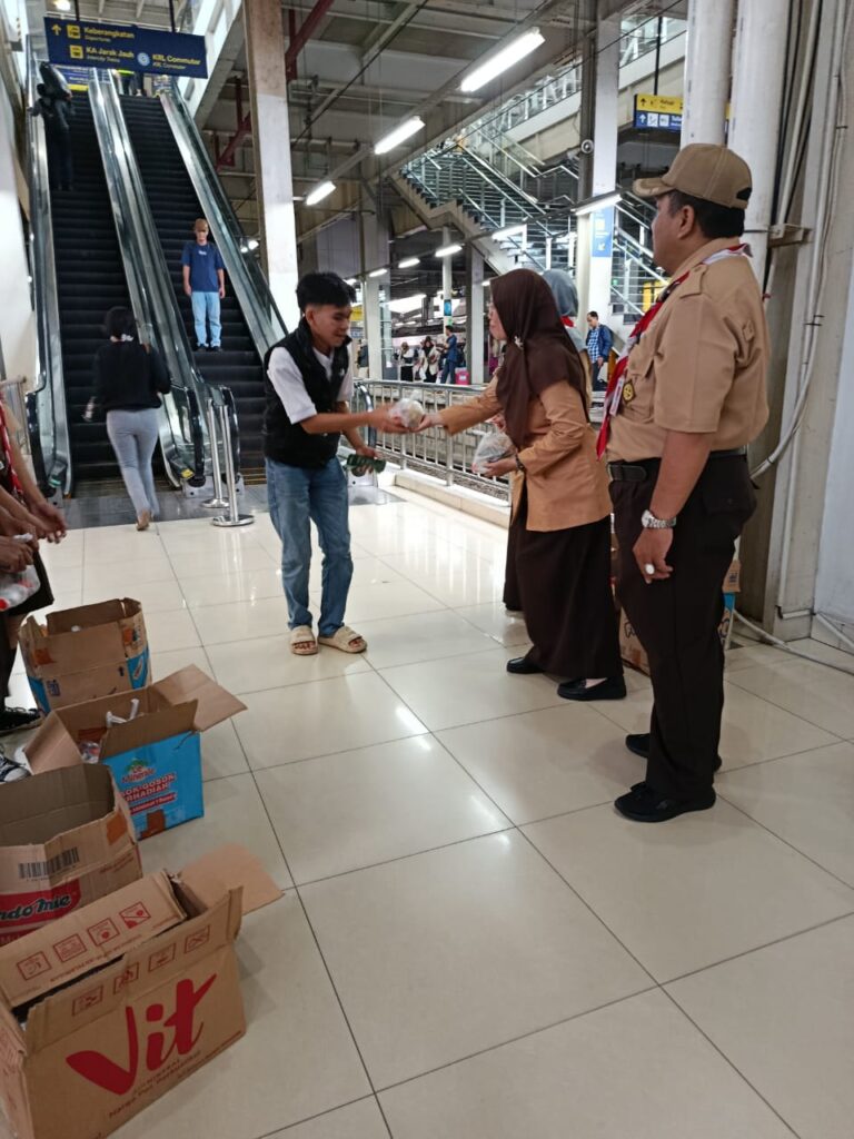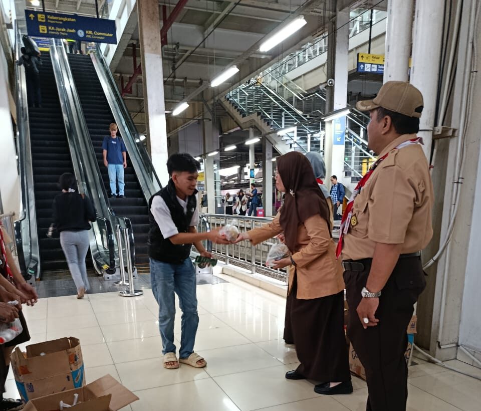 Jakarta Timur — Pramuka Peduli Kwartir Ranting (Kwarran) Jatinegara menggelar kegiatan pembagian takjil Ramadan di area Stasiun Jatinegara, Jakarta Timur, Kamis (12/3/2026). Dalam kegiatan tersebut, sebanyak 400 paket takjil dibagikan kepada penumpang kereta api, pekerja informal, serta masyarakat yang melintas menjelang waktu berbuka puasa.