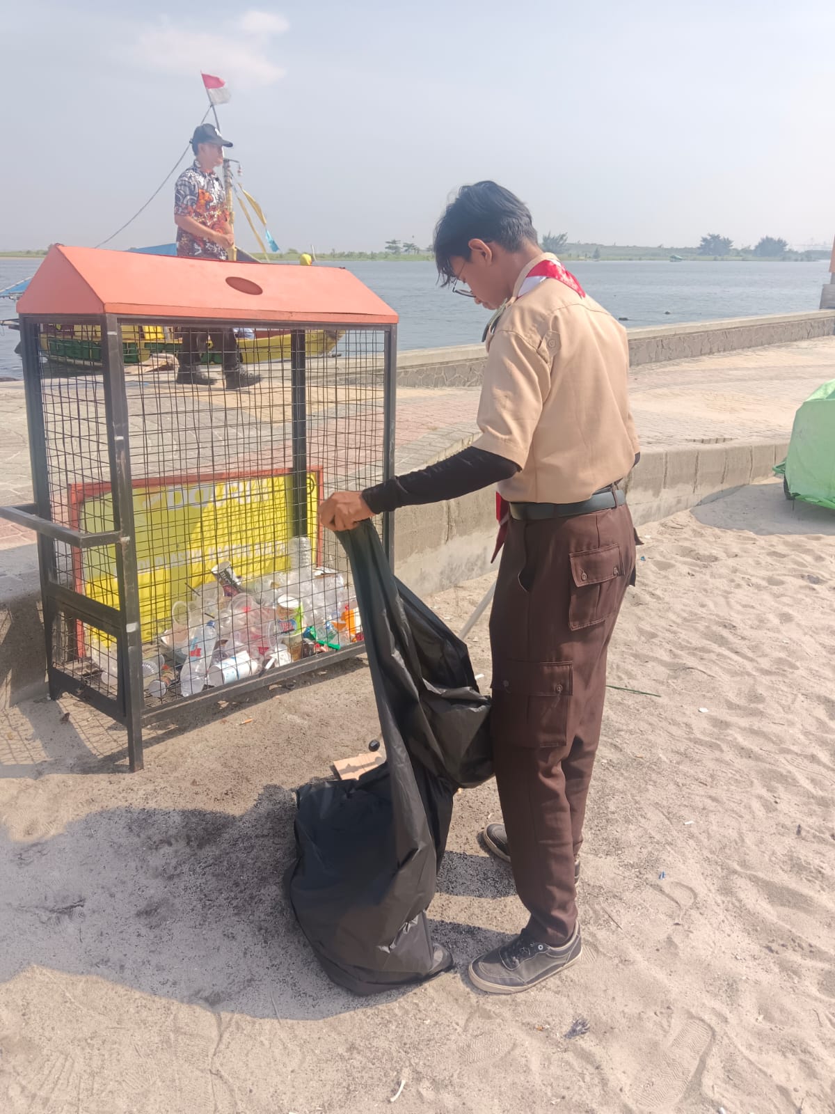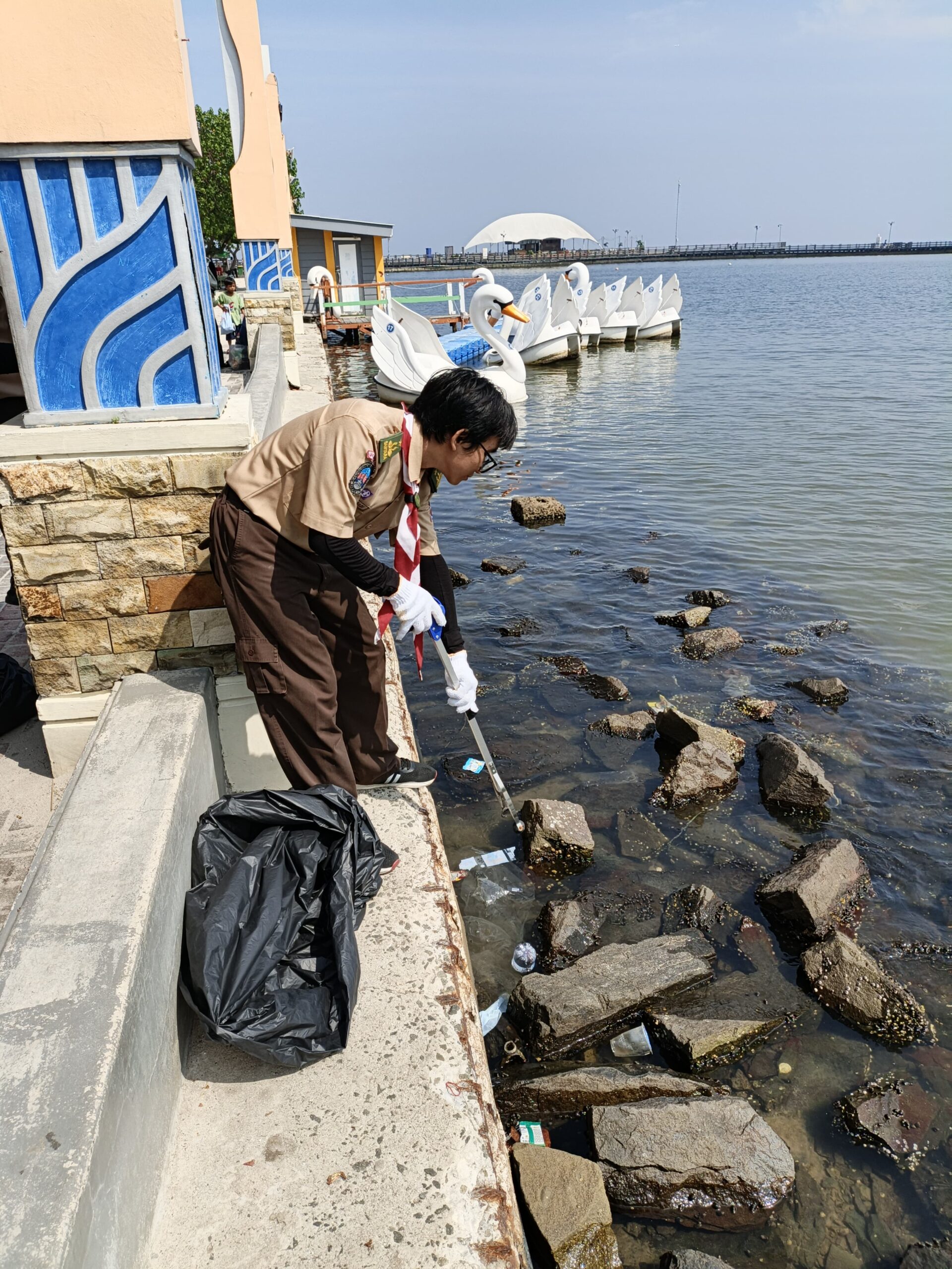 wah anak pramuka hebat sekali untuk melindungi pantai ancol
