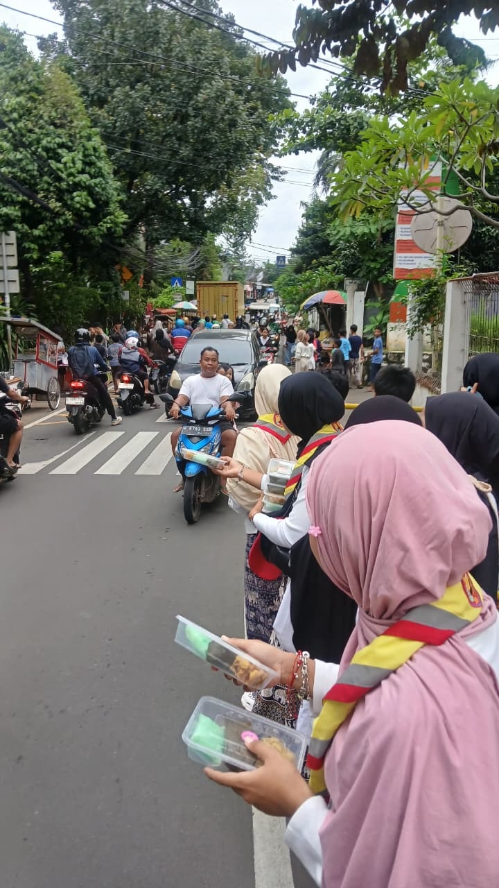 Pramuka SMPN 281 Jakarta Bagikan 800 Paket Takjil kepada Masyarakat di Kramat Jati