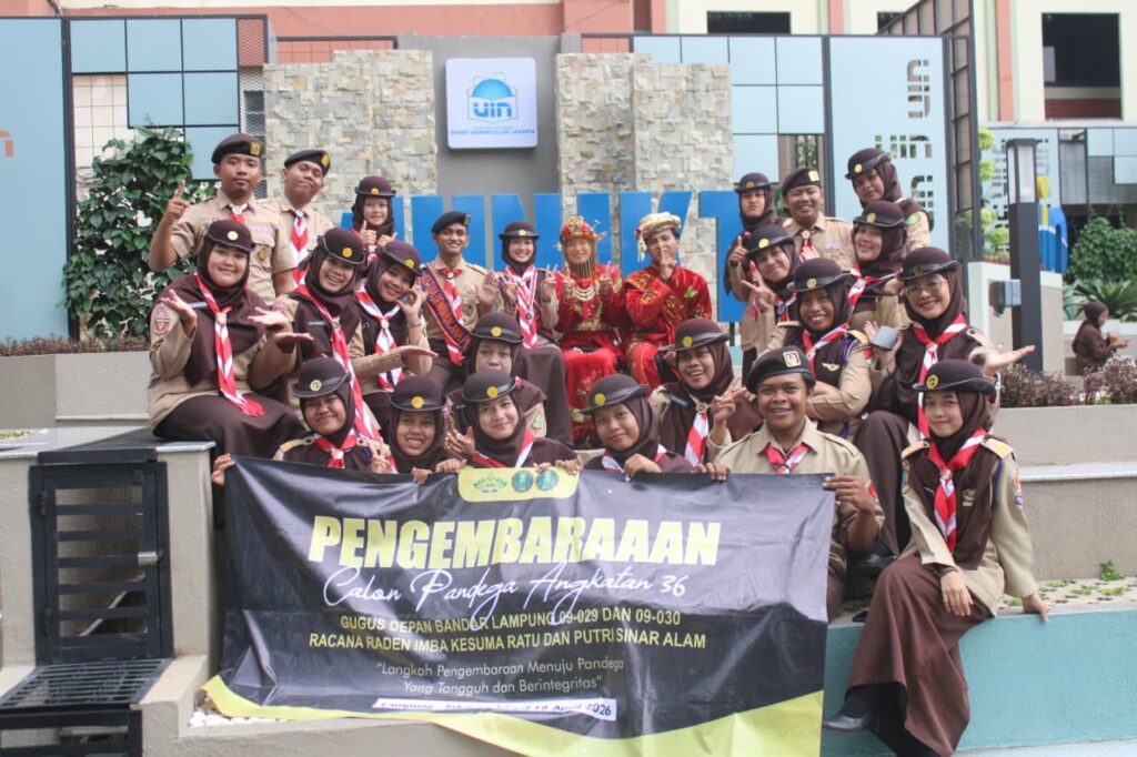 Jakarta Selatan — Racana UIN Syarif Hidayatullah Jakarta menerima kunjungan 16 anggota Pramuka dari UIN Raden Intan Lampung dalam rangka kegiatan Pengembaraan Calon Pandega yang berlangsung pada 17–19 April 2026 di lingkungan kampus UIN Jakarta.