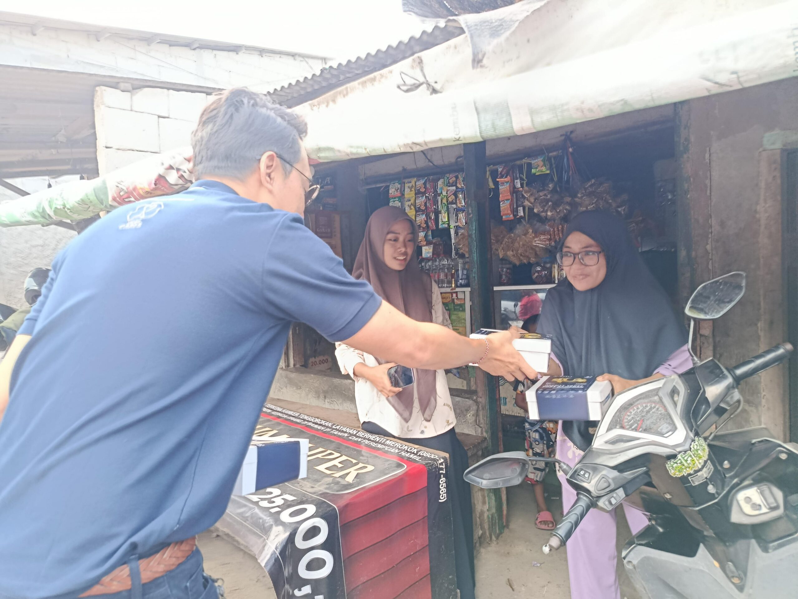 Keceriaan juga terlihat dari para penerima manfaat kegiatan tersebut. Beberapa anak yang hadir tampak antusias saat mengikuti kegiatan dan mengambil paket makanan yang telah disediakan. Selain itu, para ibu-ibu warga Kampung Nelayan juga terlihat bersemangat mengantre secara tertib untuk menerima paket nasi box yang dibagikan oleh panitia.