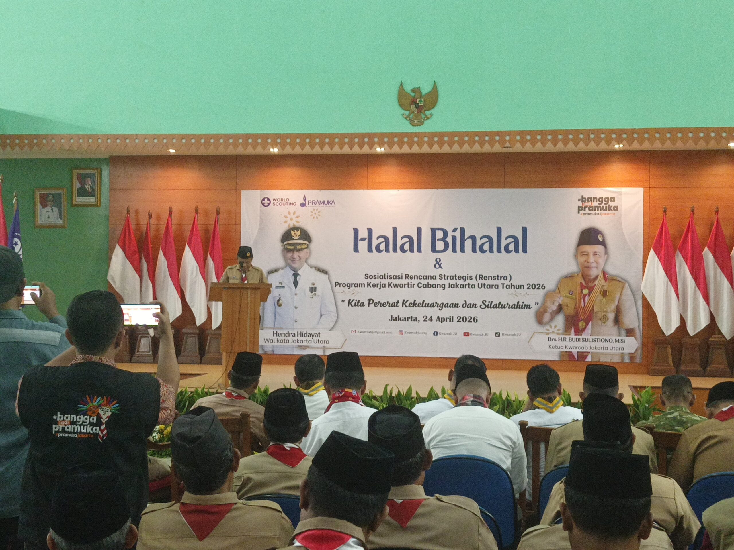Dalam sambutannya pada kegiatan Halal Bihalal Kwarcab Jakarta Utara yang digelar di Balai Yos Sudarso, Kantor Wali Kota Jakarta Utara, Jumat (24/04/2026), Hendra menilai peran Pramuka sangat penting, terutama dalam membantu penanganan berbagai persoalan kota.